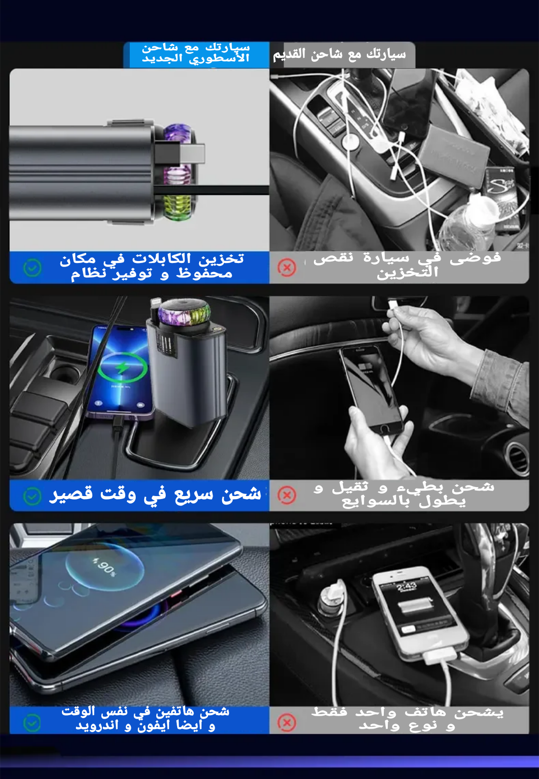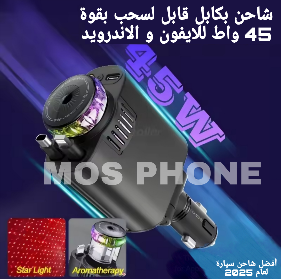 اشحن هاتفك بسرعة فائقة واستمتع بأجواء سيارتك المميزة مع شاحن متعدد الوظائف يجمع بين الأداء العالي والراحة العاطفية.