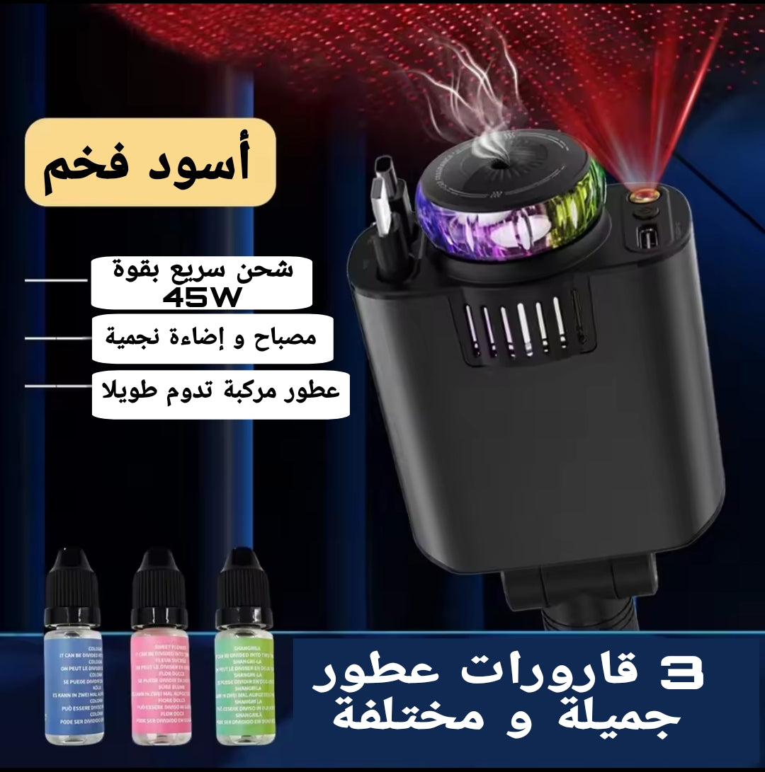 شاحن السيارة الأسطوري 5 في 1 مع مكيف هواء برائحة عطرية وإضاءة سقف نجمية – قوة وأناقة في جهاز واحد !